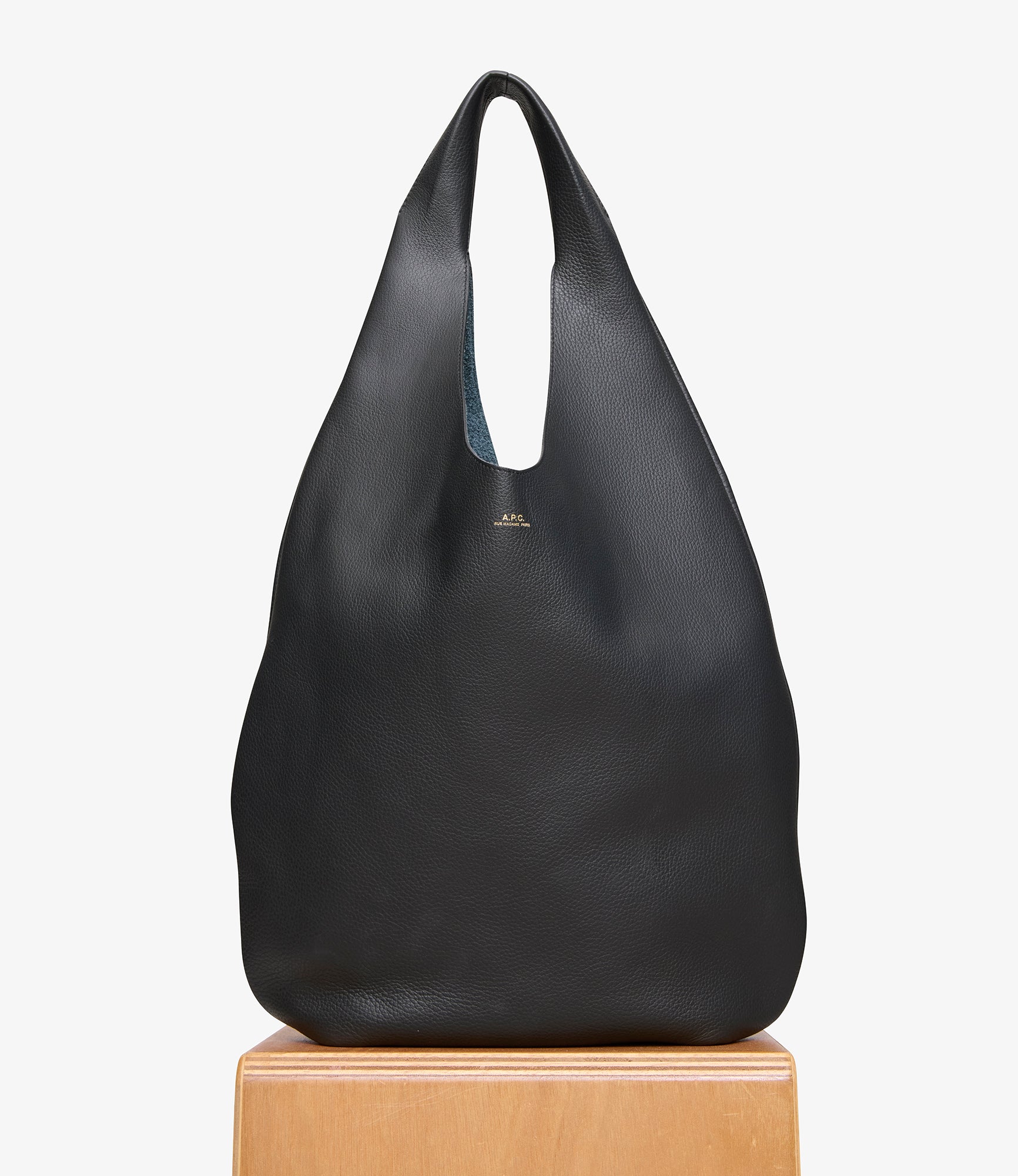Timeless minimalist bag in navy blue grained leather.
